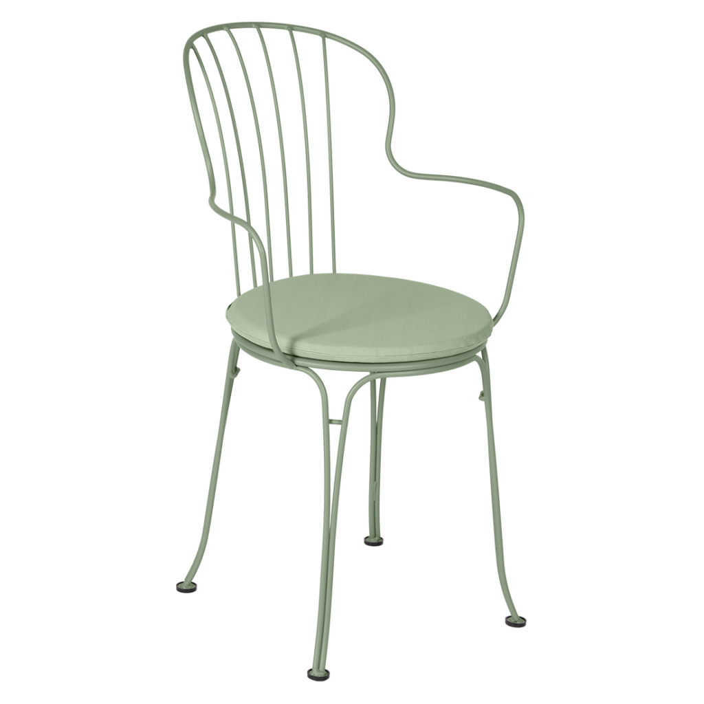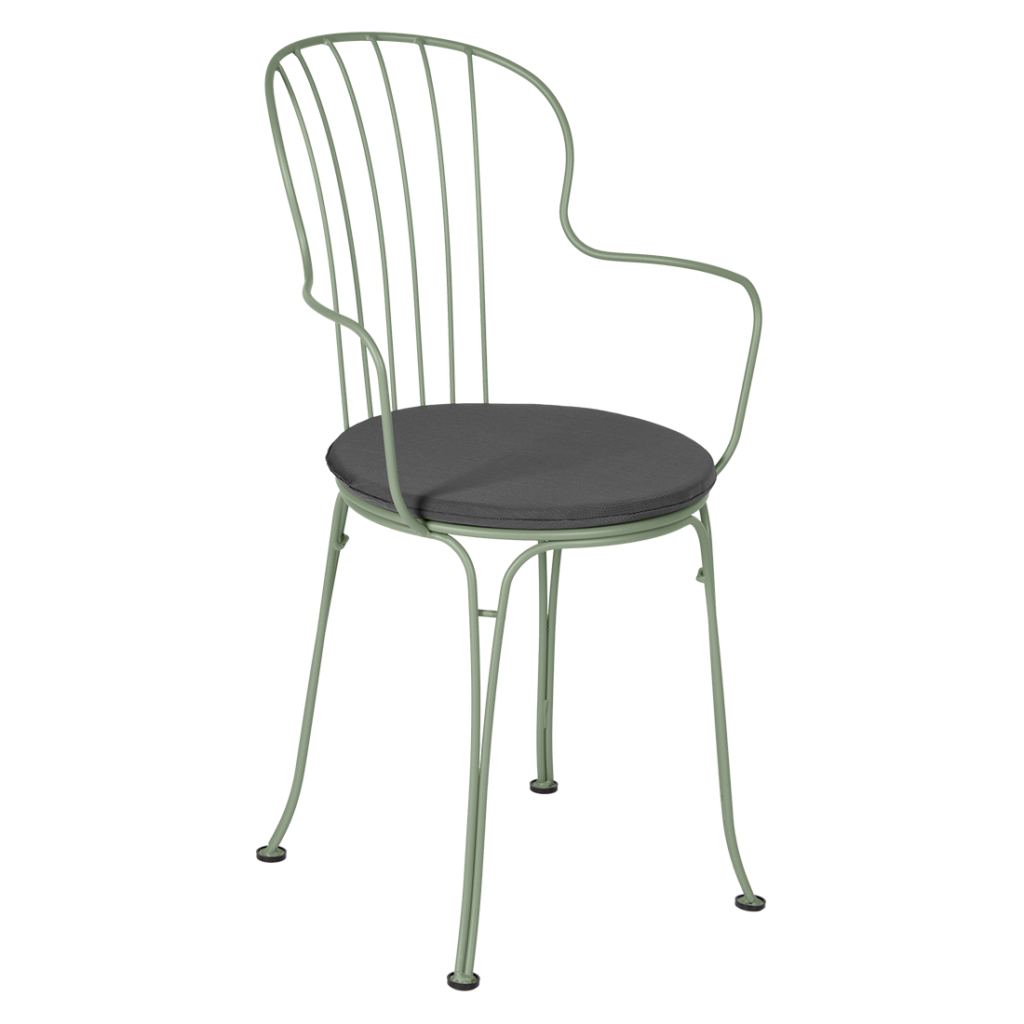 Dit kussen is speciaal ontworpen voor buitengebruik en voegt een extra speciaal vleugje comfort toe aan uw meubelen uit de serie Fermob 1900(armchair), Fermob Montmartre of Fermob Louvre. Hij is gemaakt van een mooie, matte outdoorstof (polyester met PVC-coating) en is zowel slim ontworpen als gemakkelijk in gebruik. Het is bestand tegen scheuren en gure weersomstandigheden (zon, regen, vochtigheid), houdt geen water vast, is comfortabel (schuimvulling) en is magnetisch voor een betere grip op de zitting. Dit buitenkussen is verkrijgbaar in vijf kleuren en is naar wens te mixen en matchen met je stoel. Hij is ook verkrijgbaar in Ø 39 cm.