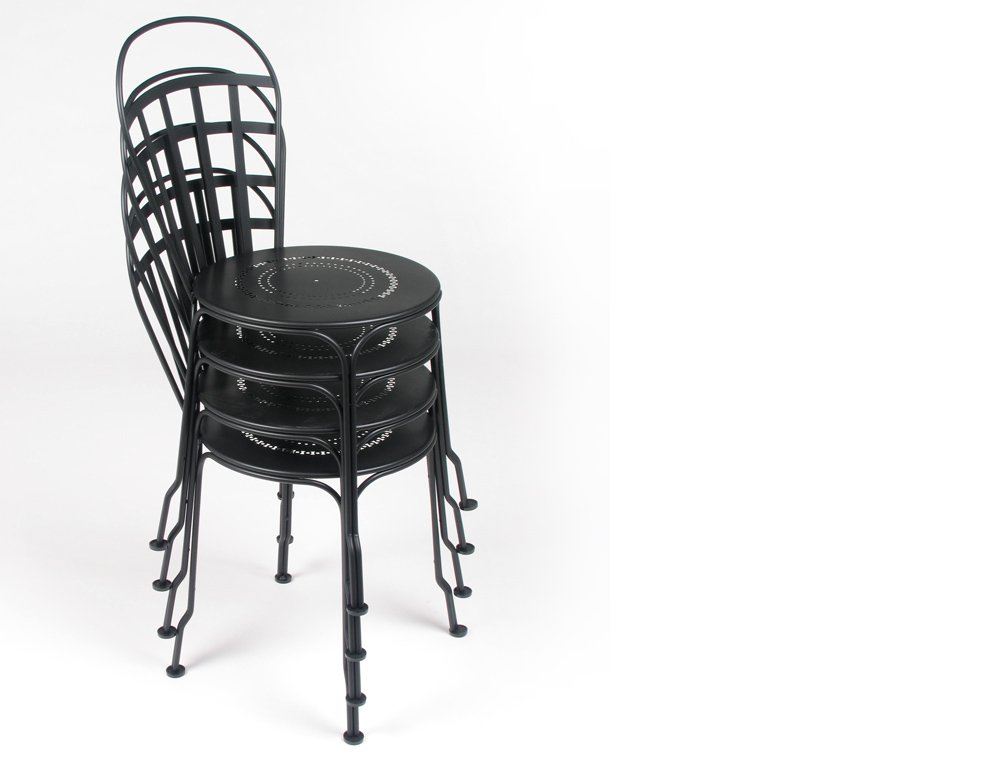 Een elegante, stapelbare tuinstoel met klassiek Frans design. De Fermob Louvre stoel combineert luchtige vormen met een stevige stalen constructie, ideaal voor zowel particuliere tuinen als professionele terrassen.