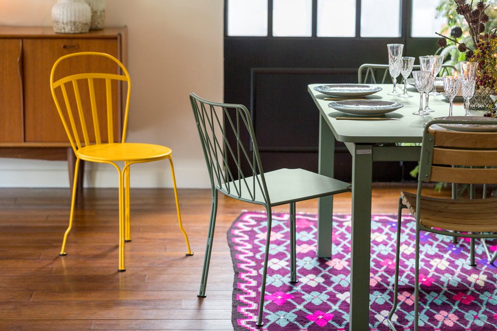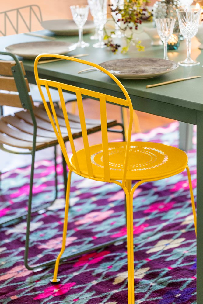 De Fermob Louvre stoel is een tijdloos ontwerp dat moeiteloos past in zowel moderne als romantische buitenruimtes. De ronde vormen, slanke lijnen en geperforeerde zitting zorgen voor een lichte uitstraling en een comfortabele zit.