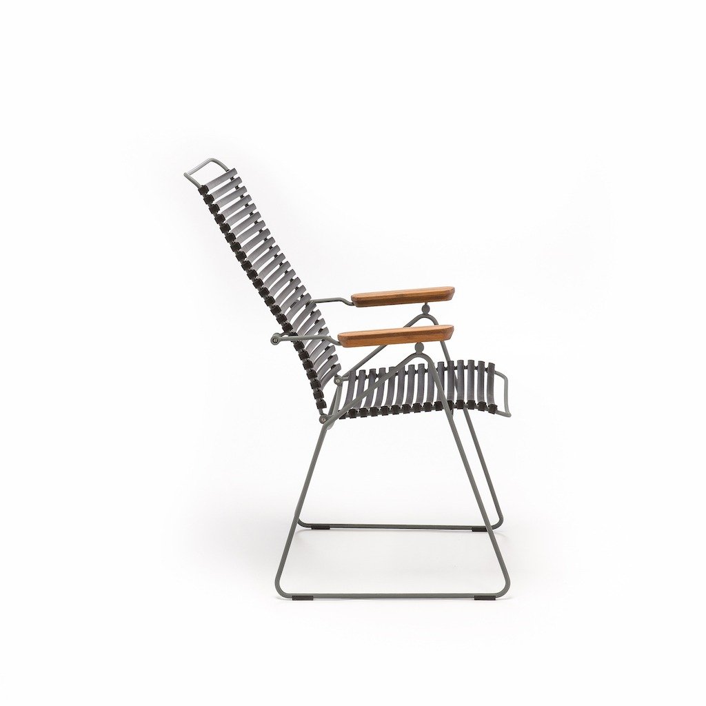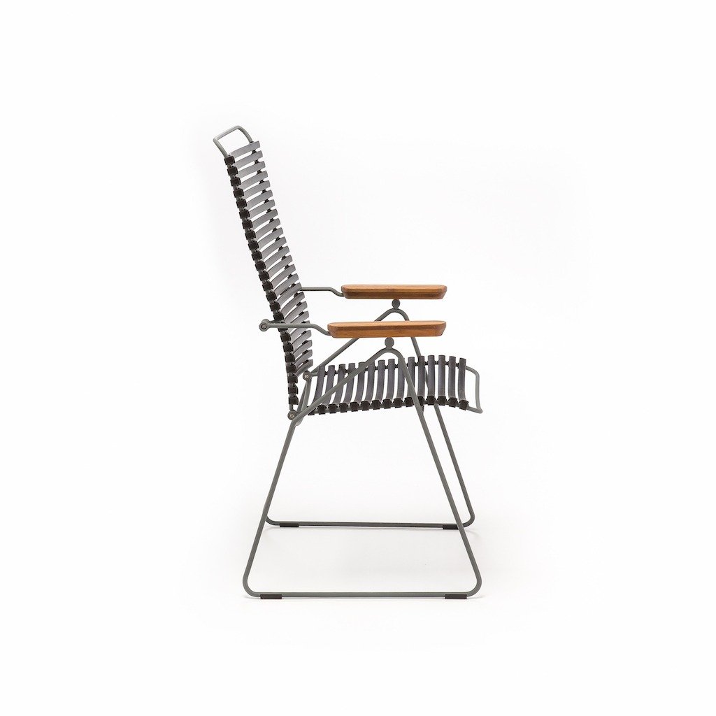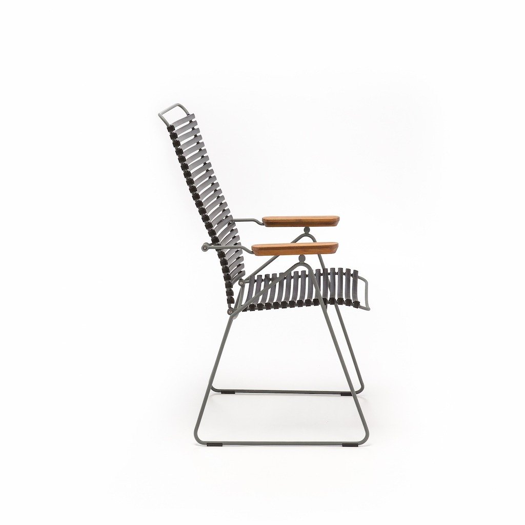 De Houe Click Armstoel verstelbaar geeft u een perfecte zit tijdens het diner aan uw tafel, maar wanneer u daarna lekker wilt doorborrelen wilt u natuurlijk lekker een beetje onderuit kunnen hangen. Nou dat kan met deze alleskunner in 12 kleuren! De Houe Click verstelbare armstoel heeft maar liefst 7 posities. Met elegante Bamboe armliggers.