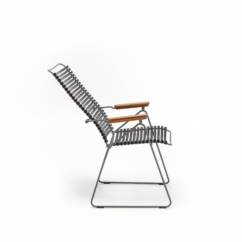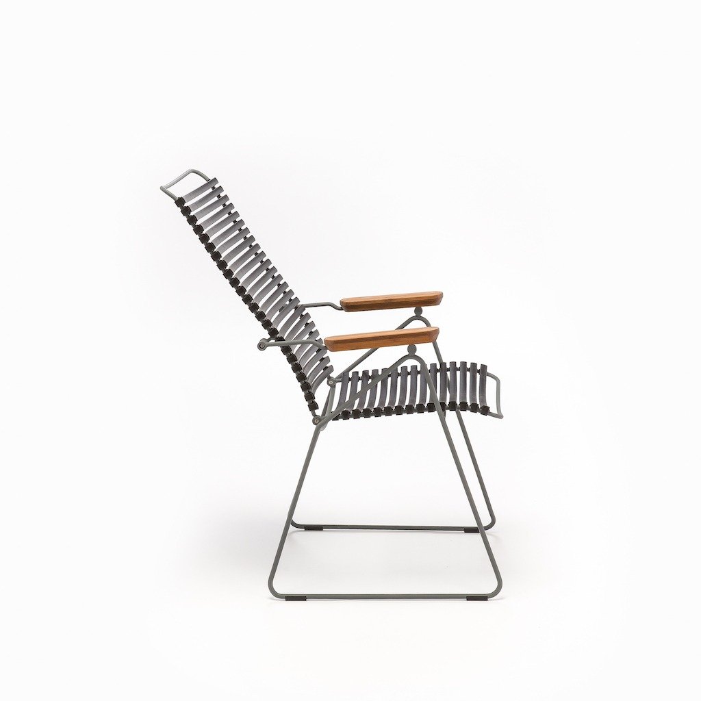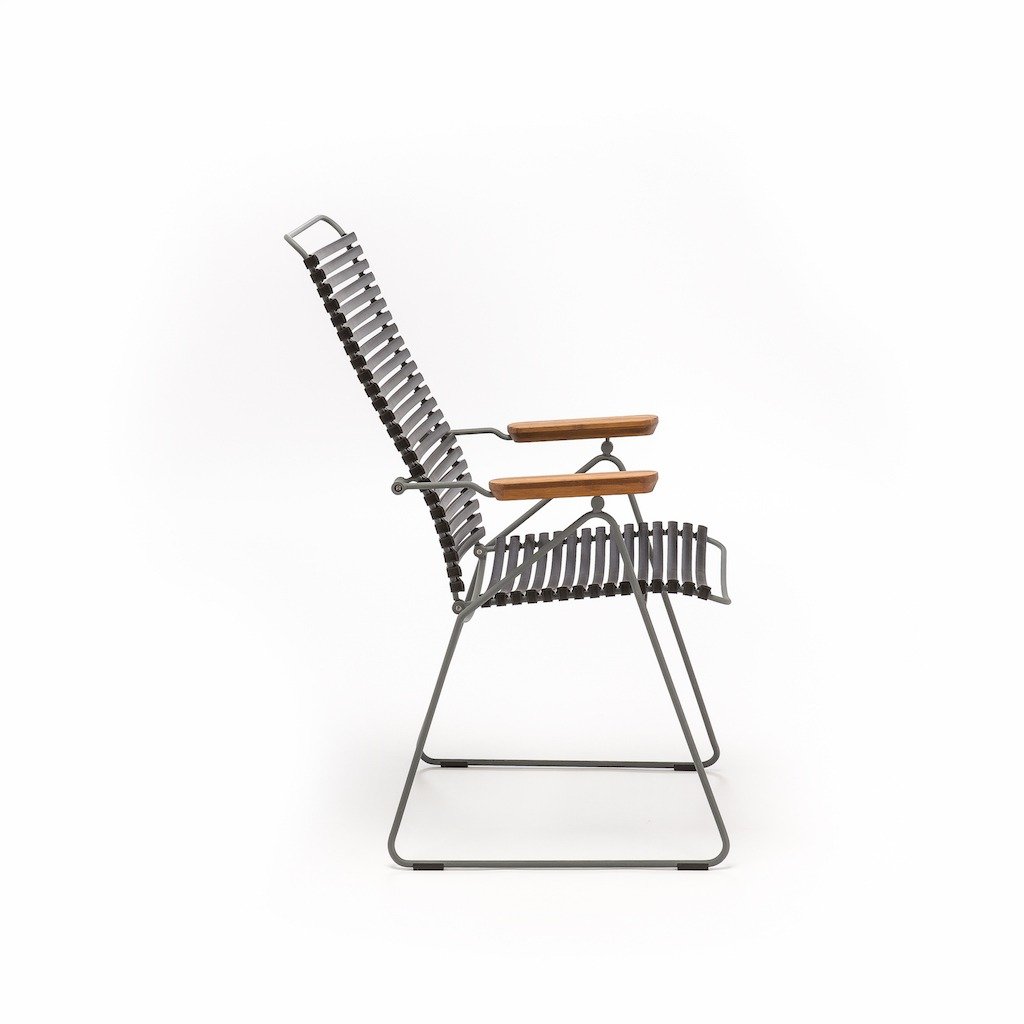 De Houe Click Armstoel verstelbaar geeft u een perfecte zit tijdens het diner aan uw tafel, maar wanneer u daarna lekker wilt doorborrelen wilt u natuurlijk lekker een beetje onderuit kunnen hangen. Nou dat kan met deze alleskunner in 12 kleuren! De Houe Click verstelbare armstoel heeft maar liefst 7 posities. Met elegante Bamboe armliggers.