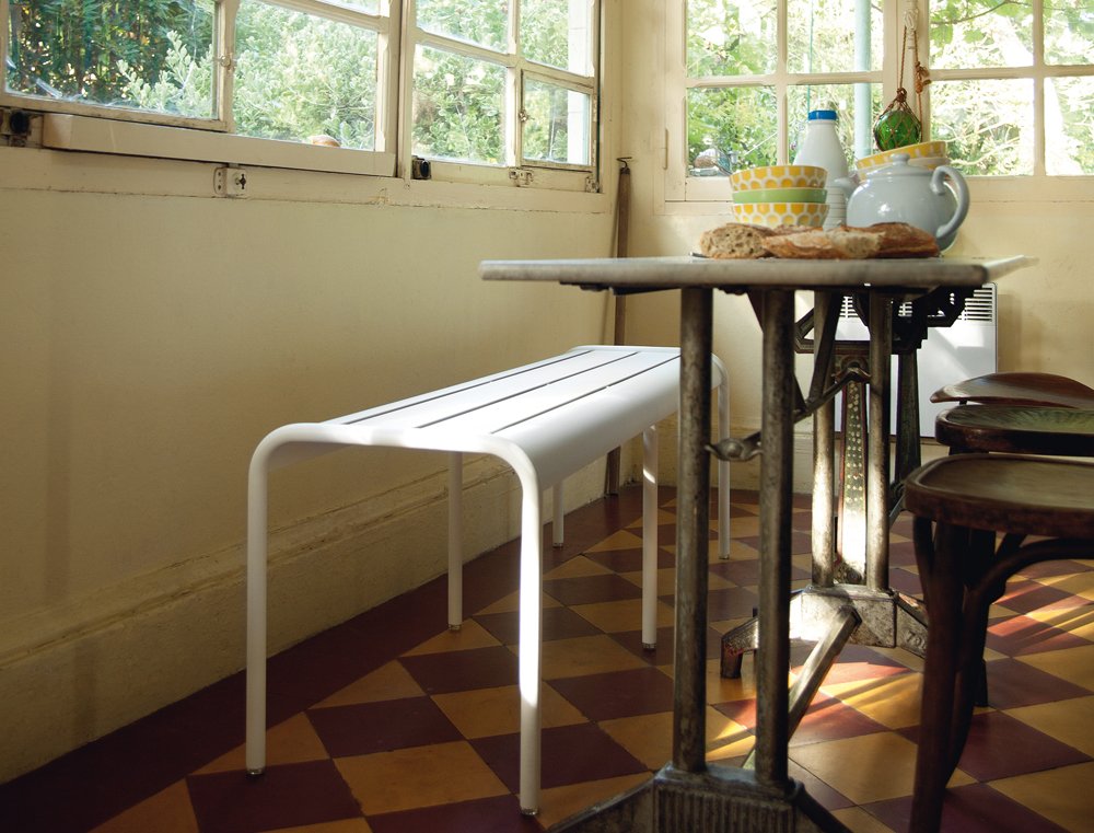 De rugloze aluminium Luxembourg bank is verkrijgbaar in de Fermob Shop bij Art Meets Design. Deze onderhoudsvriendelijke bank kan naast de Luxembourg tafels ook perfect worden gecombineerd met andere Fermob collecties. Verkrijgbaar in de vermelde Fermob kleuren.