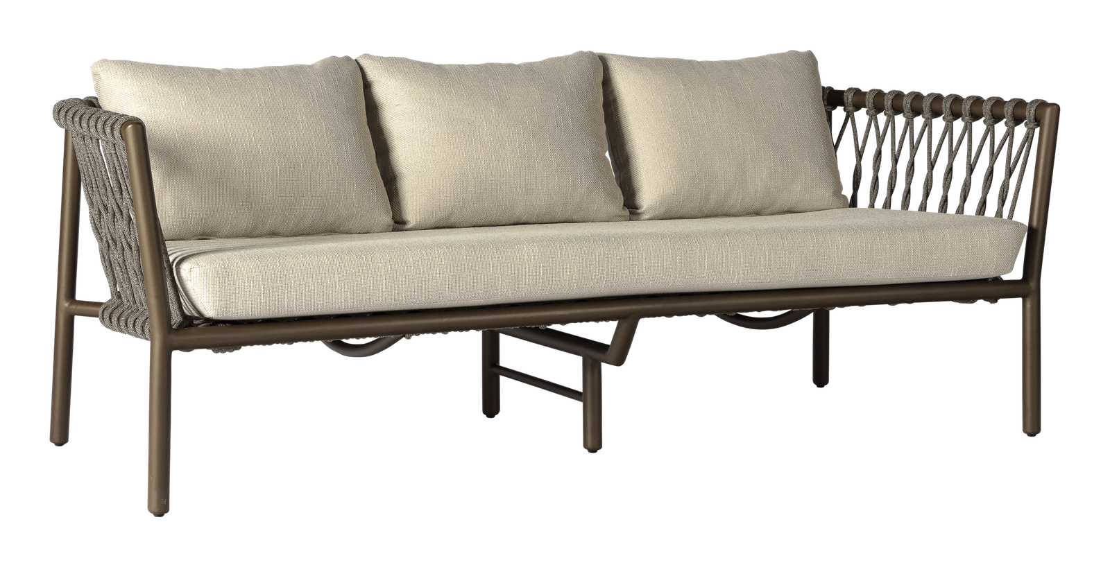 De Alba fauteuil van Max & Luuk combineert eigentijds design met ultiem comfort, perfect voor een luxe en uitnodigende buitenruimte. Het robuuste, ronde aluminium frame in een verfijnde bronzen tint geeft de fauteuil een stoere maar elegante uitstraling. De open geweven zitting, uitgevoerd in stevige rope in de kleur Wengé, voegt een uniek, luchtig element toe aan het ontwerp. De comfortabele kussens in de lichte kleur Stone zorgen voor een zacht contrast en een rustgevende sfeer. Dankzij de solide constructie en verfijnde details is de Alba fauteuil ideaal om los te plaatsen of te combineren met de Alba sofa en de Corsica tafelserie. Creëer een tijdloze loungehoek waarin stijl en ontspanning naadloos samenkomen.